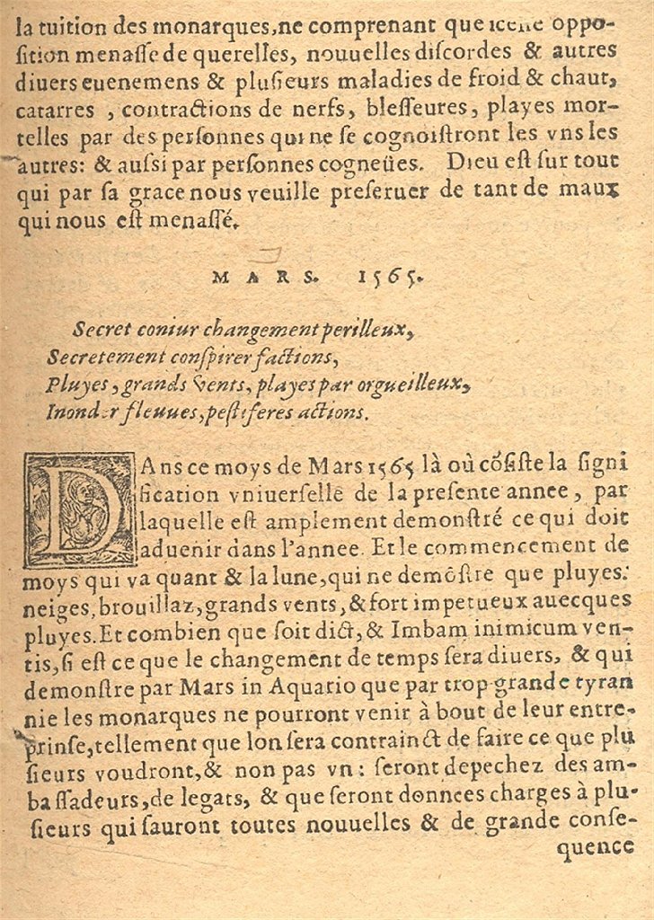 1564-001 Nostradamus, Almanach pour l'an 1565